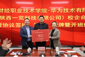 发言环节结束后,在现场人员的共同见证下,会计学院院长常茹与陕西一览科技有限公司总经理王玉民分别代表与会双方进行校企合作运营协议签约及资金投入仪式。院长程书强与华为技术有限公司陕西政企教育医疗总经理郭程共同为华为ICT会计产业学院授牌。程书强院长随即宣布2022级智慧财经卓越班正式开班。