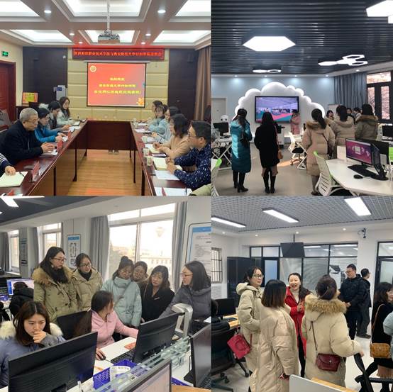 我院专业负责人刘艳妮、任芳丽、井杰琳老师与对方院校教研室主任对于学科建设进行深入的交流。双方就职业技能实训的教学展开深入的交流。在交流中找差距、促发展,大力促进双方更好更快地提升办学水平,提高教育教学质量。