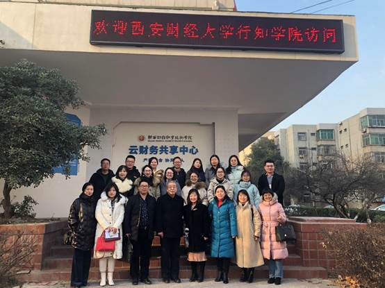 2019年12月31日,西安财经大学行知学院会计分院副院长韩磊、双创学院院长王栓萌一行9人来我院考察工作,双方在实训楼一楼会议室举行座谈会。会议由用友·新道会计学院副院长缑宇英主持,用友·新道会计学院院长李启明、商学院院长董媛、相关专业负责人及新道科技股份有限公司张丽、丁丽君参加了座谈会。
