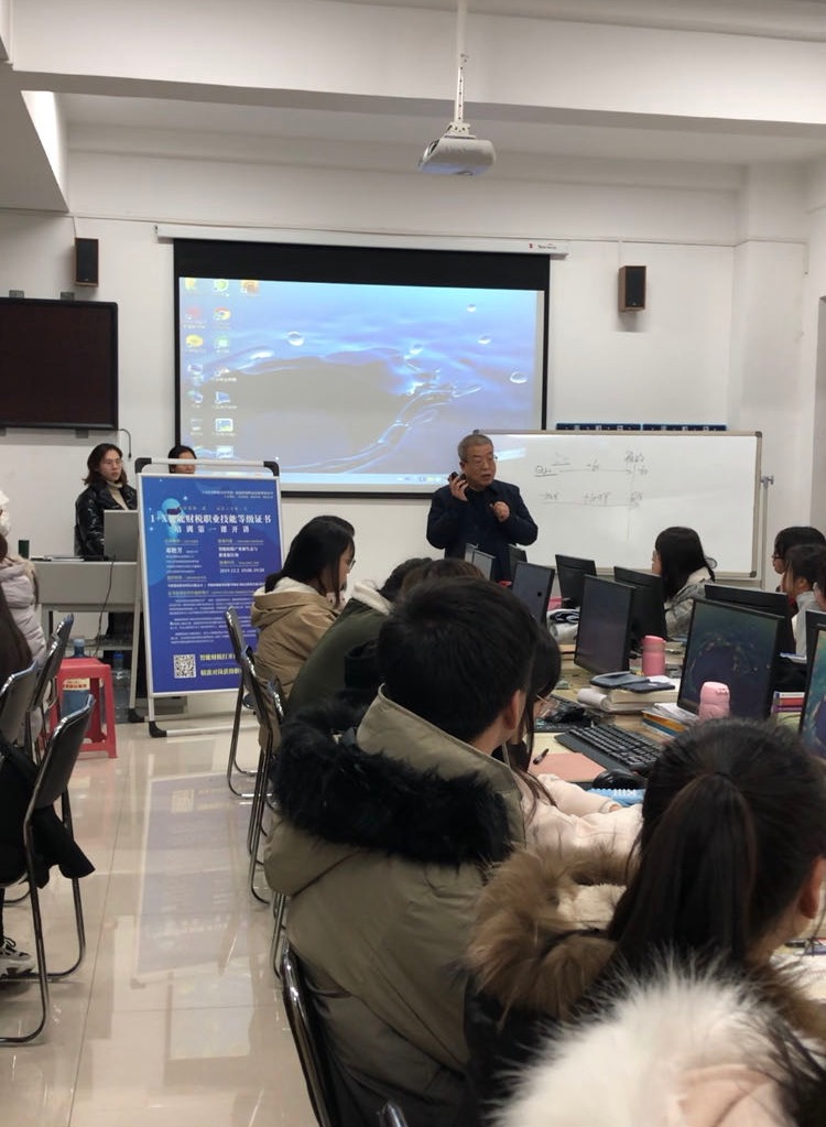 为推进落实教育部1+X证书制度试点工作,提升高素质劳动者和技术技能人才培养能力。继我校成功入选“1+X”智能财税职业技能等级证书第二批试点学校之后,用友·新道会计学院于12月2日晚19:00,组织近八十名学生通过一同观看线上直播课程的形式,于实训楼711教室与全国各试点学校进行同步培训学习。