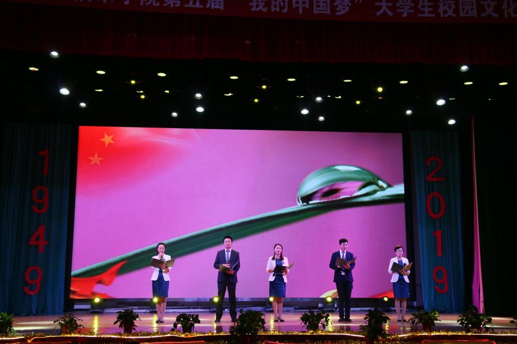 10月30日下午,我院庆祝中华人民共和国成立70周年第五届“我的中国梦”大学生校园文化艺术节闭幕式暨“最美朗读者”师生选拔大赛总决赛在学院大礼堂成功举办。学院党委副书记朱华斌出席活动,相关处室院部负责人、用友·新道会计学院全体教职工以及其他二级学院师生约1400余人参加活动。人文艺术学院执行院长崔斗、团委书记窦曼娟、党委组织部副部长张洁、人文艺术学院语文艺术教研室副主任马晶照、团委干事贺华担任本次大赛评委。