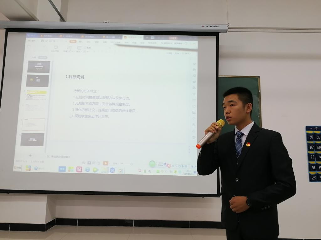 通过前期一轮、二轮的面试筛选,最终100余名学生登上了三轮竞聘演讲的舞台。主持人阐明了本次竞聘演讲大会的规则及流程后,百余名竞聘者通过PPT展示和慷慨激昂的竞职演讲,自信的向评委老师们展现自身优势,谈论部门规划,提出创新建议,发出服务同学、历练自我的心声。文艺部的同学也通过自身特长给大家带来了精彩的歌舞表演,赢得了师生们的阵阵掌声。
