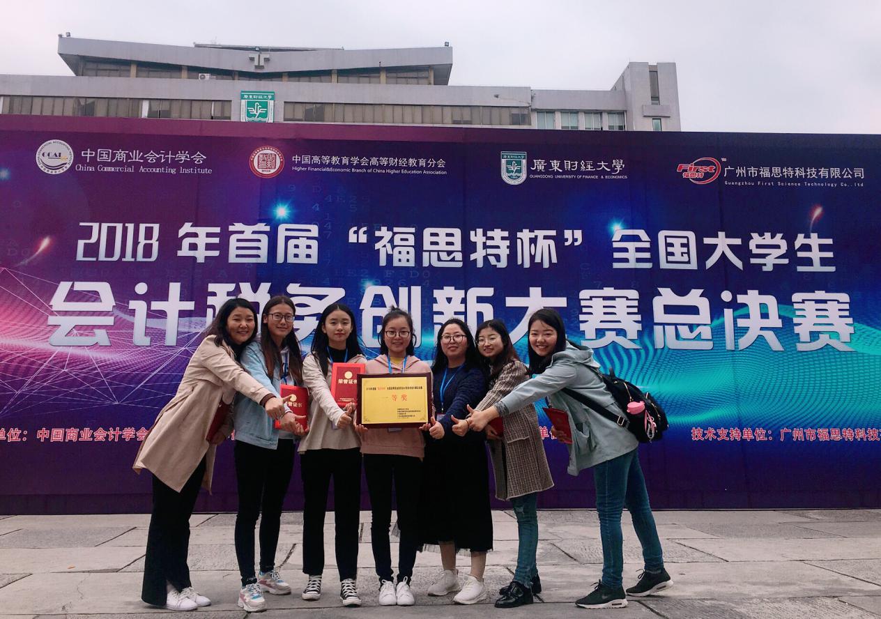 首届“福思特杯”全国高等职业院校会计税务创新大赛总决赛,于2018年12月8日,在广东财经大学隆重举行,我校由会计学院薛媛、高巧利老师指导,会计学院学生卫欣怡、杨盼、张婷、张洁蓉、郝珍珍组成的代表队荣获一等奖。