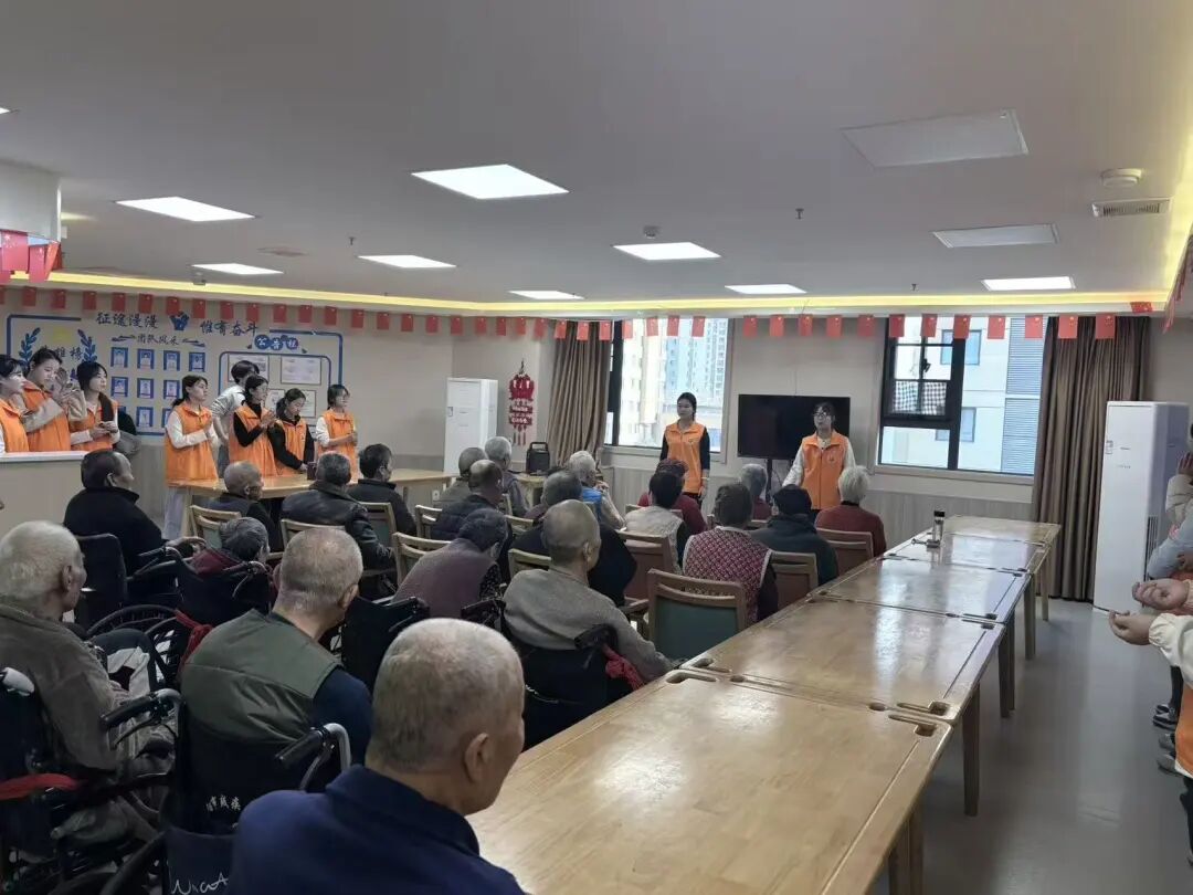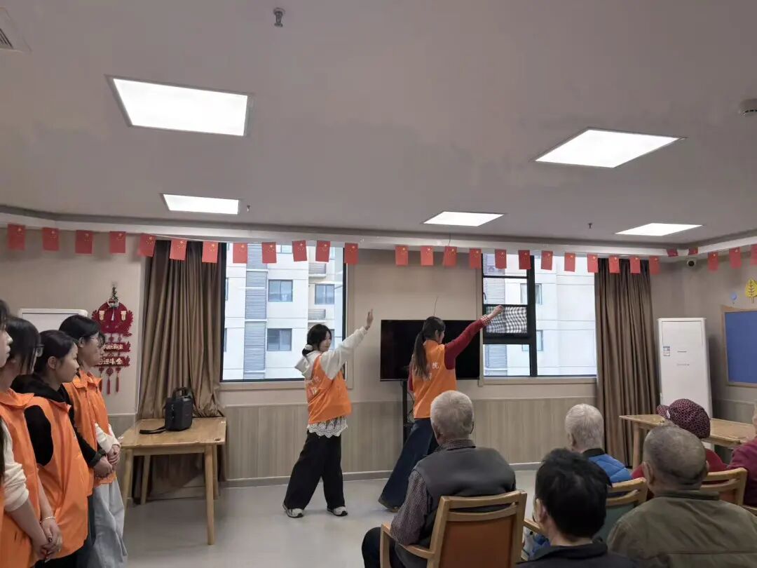 12月31日下午,咸阳市新泉社区敬老院张灯结彩、暖意涌动。会计学院“先锋橙”志愿队32名学子携手开展“学子传递,敬老温情”元旦主题志愿服务,用一场精心编排的文艺汇演,为40余位老人送上节日祝福与青春关怀,在寒冬里绘出一幅“青春伴夕阳”的温情画卷。
