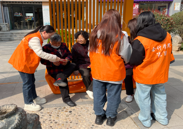 在“3·15”国际消费者权益日来临之际,为进一步普及消费维权知识,引导广大群众树立理性消费理念,增强依法维权意识,2026年3月14日,会计学院教师王佳丽带领学生志愿者走进礼泉新城社区,开展“提升维权意识,共筑满意消费”消费者权益保护科普活动,以实际行动践行社会责任,搭建校社联动的科普桥梁。
