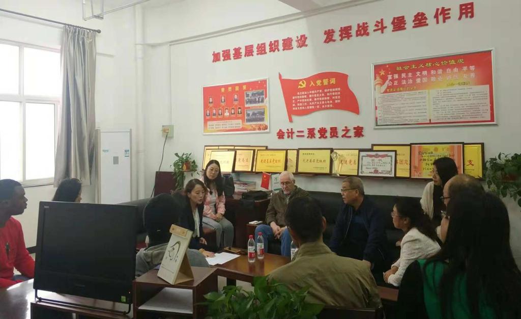 为加快推进我院承担的三年行动计划之RW-3和RW-41工作进度,按照我院实施三年行动计划工作安排,2018年10月8日会计学院邀请咸阳职业技术学院国际交流合作处副处长魏文萍、陕西工业职业技术学院的外籍专家John Smith、咸阳师范学院的来华留学生banto和Evans等召开三年行动计划之涉外任务建设座谈会。参加座谈会的有会计学院院长李启明、党总支书记乔晶策、副院长缑宇英以及参与RW-3和RW-41的教师,会议由会计学院院长李启明主持。