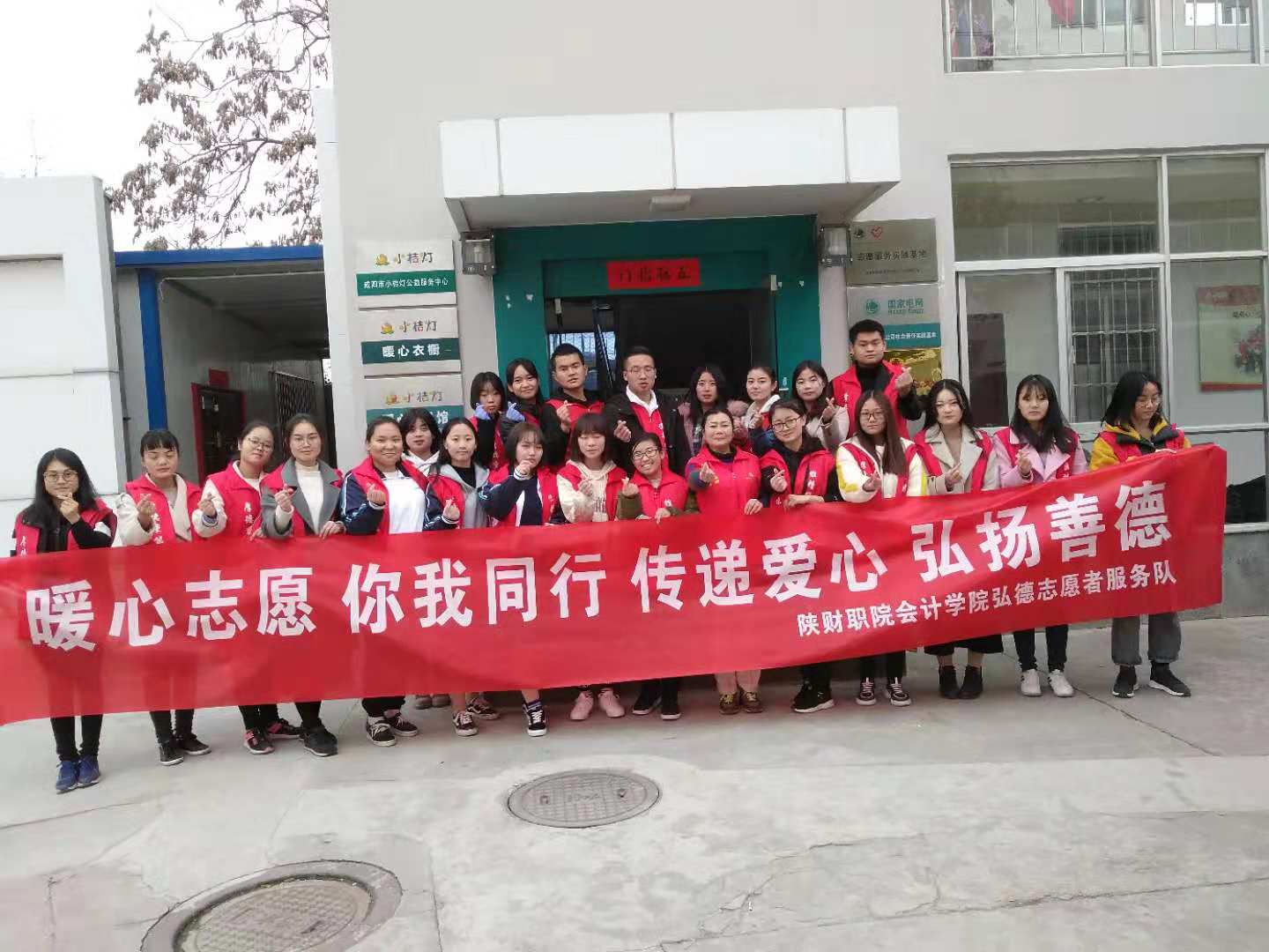 2018年11月29日下午2时,陕财职院会计学院弘德志愿者服务队23名志愿者同学走进了位于咸阳市陈杨寨转盘咸阳供电公司培训中心-----咸阳小桔灯公益服务中心,开展主题为“暖心志愿你我同行传递爱心弘扬善德”的志愿者服务活动。这项公益活动由会计学院弘德志愿者服务队前期同咸阳小桔灯公益服务中心进行沟通,确定每周四下午3时至5时开展。