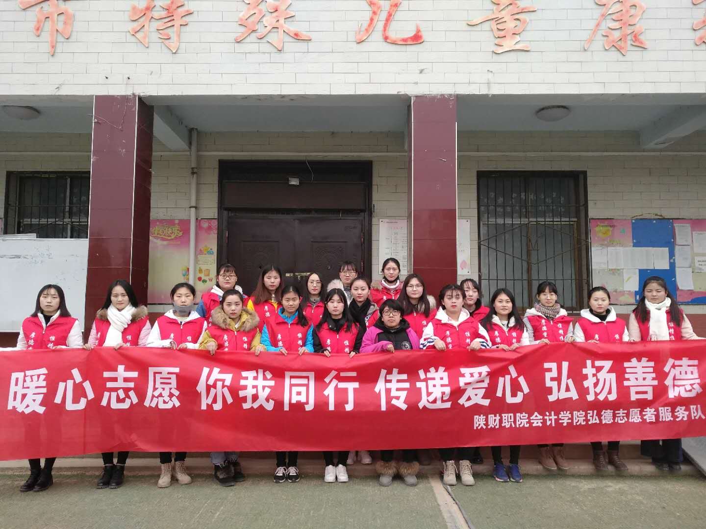 冒着寒风,2018年12月14日下午2:00,会计学院“弘德”志愿者服务队20名志愿者同学来到特殊儿童康复中心,开展主题为“特别的爱送给特别的你”志愿服务活动。
