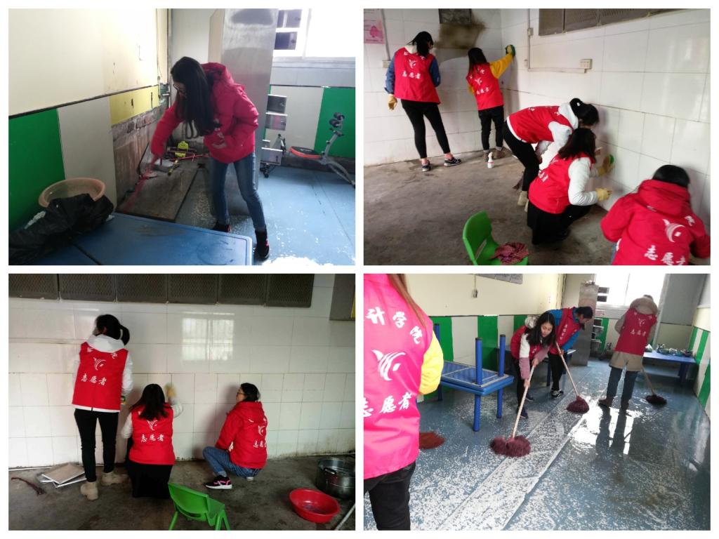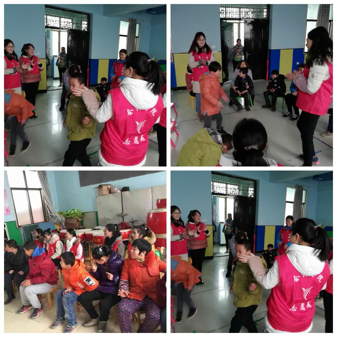到达特殊儿童康复中心后,负责人陈莎对志愿者同学的到来表示欢迎,并对带来的礼物表示感谢。随后,志愿者同学分为两组,开始对操场和厨房餐厅进行大扫除,搬桌子、扫地、拖地、擦墙,志愿者同学不怕冷、不怕累,积极、认真的完成清洁工作。大扫除工作完成后,志愿者同学先熟悉教室的环境,尝试与特殊儿童们进行互动交流后,进入音乐课教室和游戏课教室。在音乐课教室里,志愿者们和小朋友们一起跳舞、玩游戏,志愿者杨晶晶同学也为小朋友们表演了一段精彩的小魔术,看着这个新奇的小游戏,小朋友都伸长脖子紧盯着,高兴的拍手呼喊。在游戏课教室里,志愿者同学和小朋友们一起抢凳子、丢手绢……教室里充满了欢声笑语。