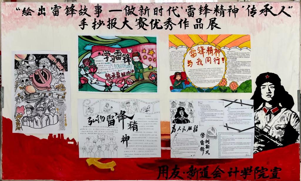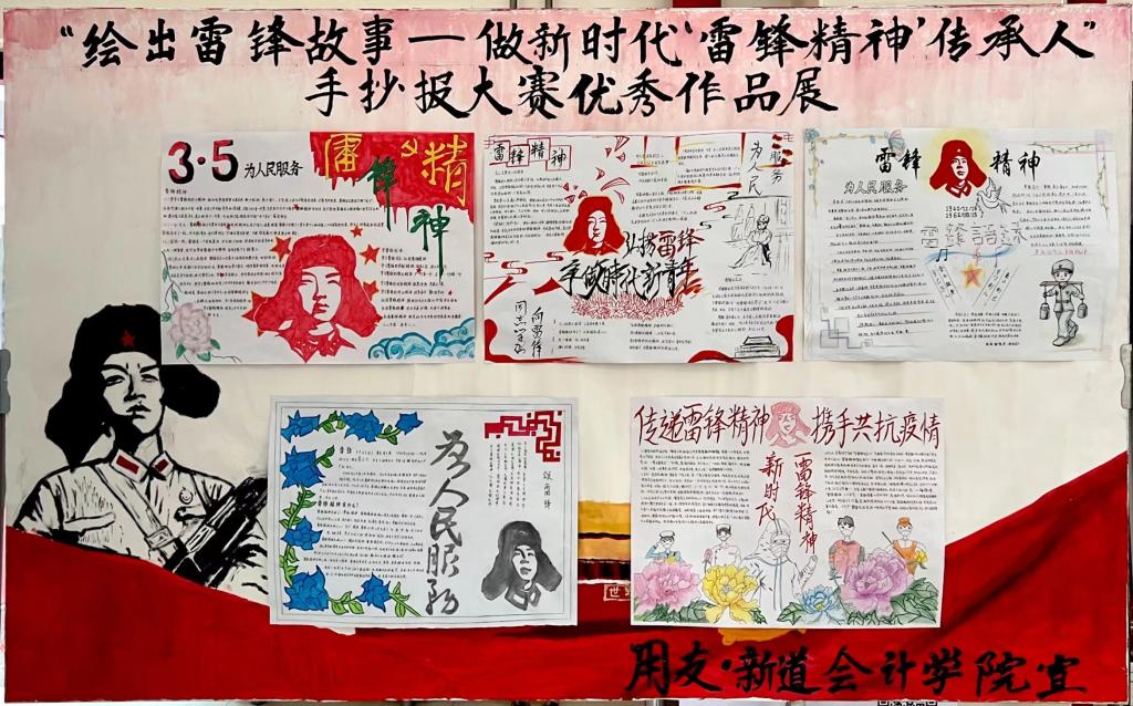 为了进一步鼓励我院学生学习和弘扬雷锋精神,积极贯彻落实习近平总书记关于志愿服务的重要论述,由校团委主办,用友·新道会计学院团总支承办的“绘出雷锋故事——做新时代‘雷锋精神’传承人”手抄报大赛于近日举行。