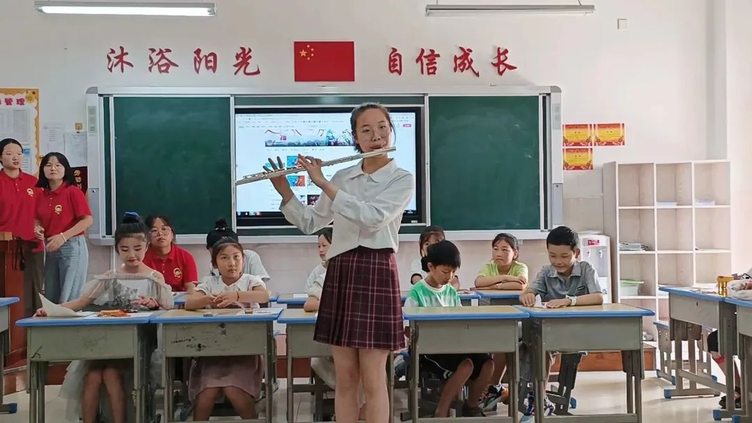 这次汇报演出由志愿者何雪雪和蒋涵、张梦涵、杨雨萱三名小朋友共同主持。特别是三位小主持人,她们一点没有怯场,语言流畅自然、字正腔圆、落落大方。演出的设备虽然简陋,但现场气氛却相当热烈。同学们带来的舞蹈表演、歌曲演唱、风趣幽默的小品等节目也都是精彩纷呈。张梦涵同学带来了长笛演奏,笛声优美;邓雅琪、陈亚轩两位同学表演双人手势舞《旱安隆回》,动作整齐划一;徐晨宇同学演唱了《孤勇者》,歌曲慷慨激昂;邓诗铭瑄同学表演了鬼步舞,舞步干脆利落;强锦琨同学表演了小品,诙谐幽默的表演逗得在场的观众捧腹大笑;同时我们也邀请到了另一支社会暑期三下乡队伍“晨曦”助老服务队,给大家表演了瑜伽节目。瑜伽节目虽然演出时间不长,但是也能看出表演者伸展、力量、耐力方面的功夫,透露出身心和谐稳定的状态。当然志愿者们也不甘落后,给同学们也带来了自己的拿手节目。整个演出每一位同学的节目都感情饱满,情感流露非常自然,欢声笑语连成一片。大家的热情演出和无限创意远远超出了预期,此起彼伏的欢呼声把整个演出推向了高潮。